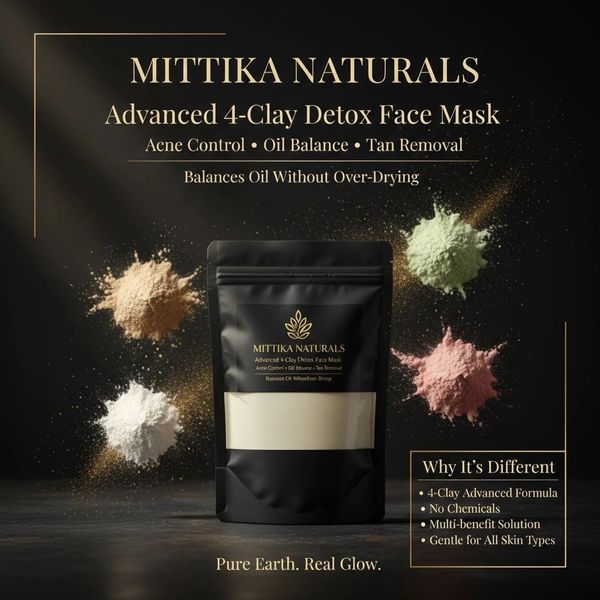 At the heart of Mittika Naturals is our unique 4-Clay approach, combining Multani Mitti, Kaolin, French Green Clay, and Rose Clay to deliver multiple benefits in one solution.
